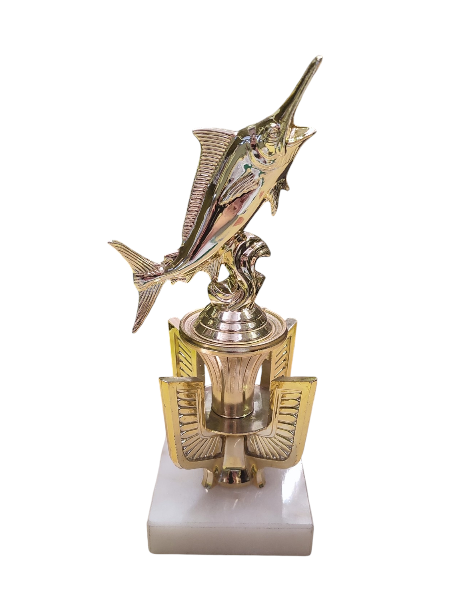 Winged Marlin On White Marble Base
